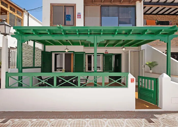 La Casa Playa Palmeras Villa, de 100 m^2, está ubicada a 15 minutos a pie de la Playa Chica y a 20 minutos andando del parque Rancho Texas de Lanzarote. La villa ofrece alojamiento con una cocinilla equipada además de una mesa de trabajo, televisión por satélite, una plancha y tabla de planchar.
